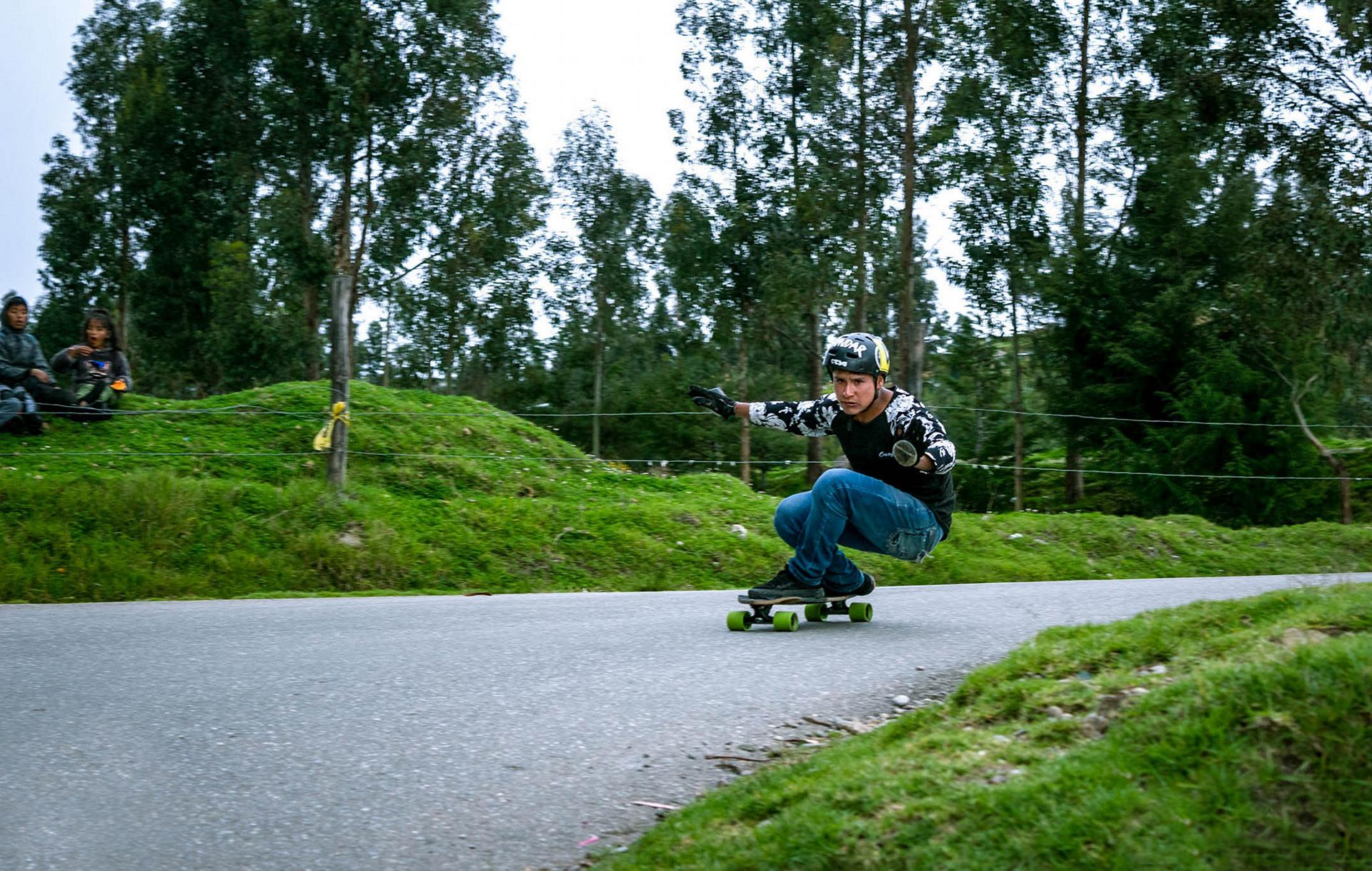 Downhill skateboarding en Paccha